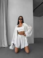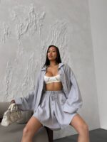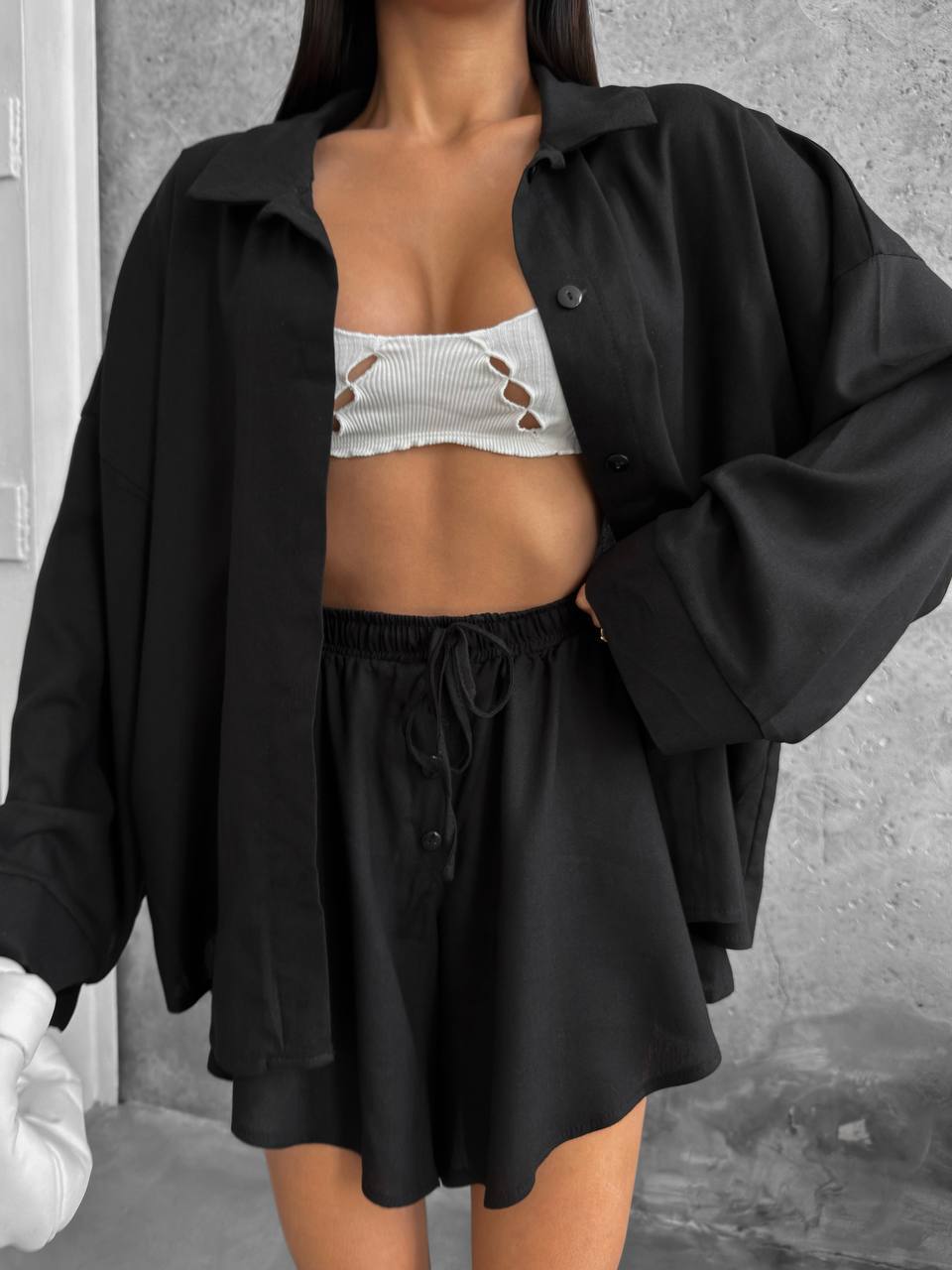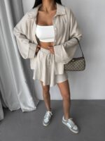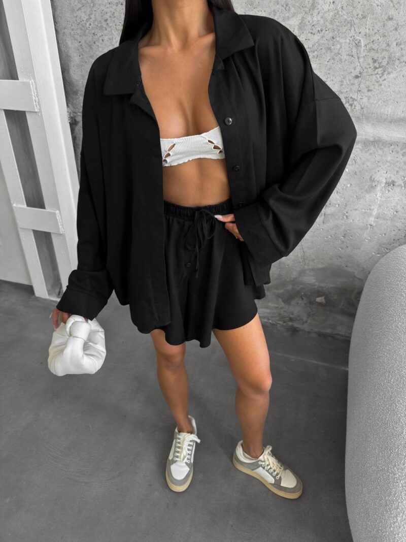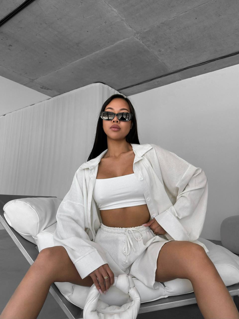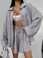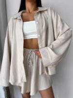 Šio sezono pardavimų hitas – stilingi kostiumėliai iš lino, madingų, aktualių spalvų. Labai patogūs ir praktiški: laisvo kirpimo marškiniai su sagomis, šortai su guma, dekoruoti sagomis. Puiki kokybė!⠀